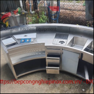 Sự tiện ích của quầy pha chế inox không chỉ là trong việc trang bị nhiều ngăn và kệ đựng, mà còn trong việc tích hợp chức năng chậu rửa và khay đựng đá, tạo ra không gian hiệu quả và tiết kiệm thời gian tìm kiếm nguyên liệu.